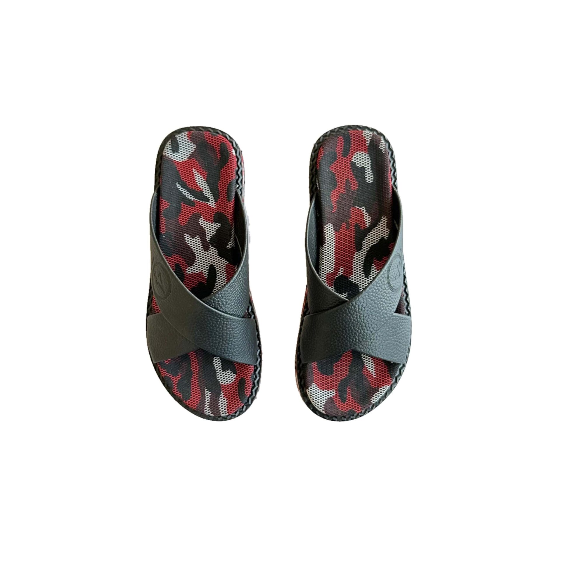 A MIXTURE OF CAMO AND BLACK SKIN LEATHER